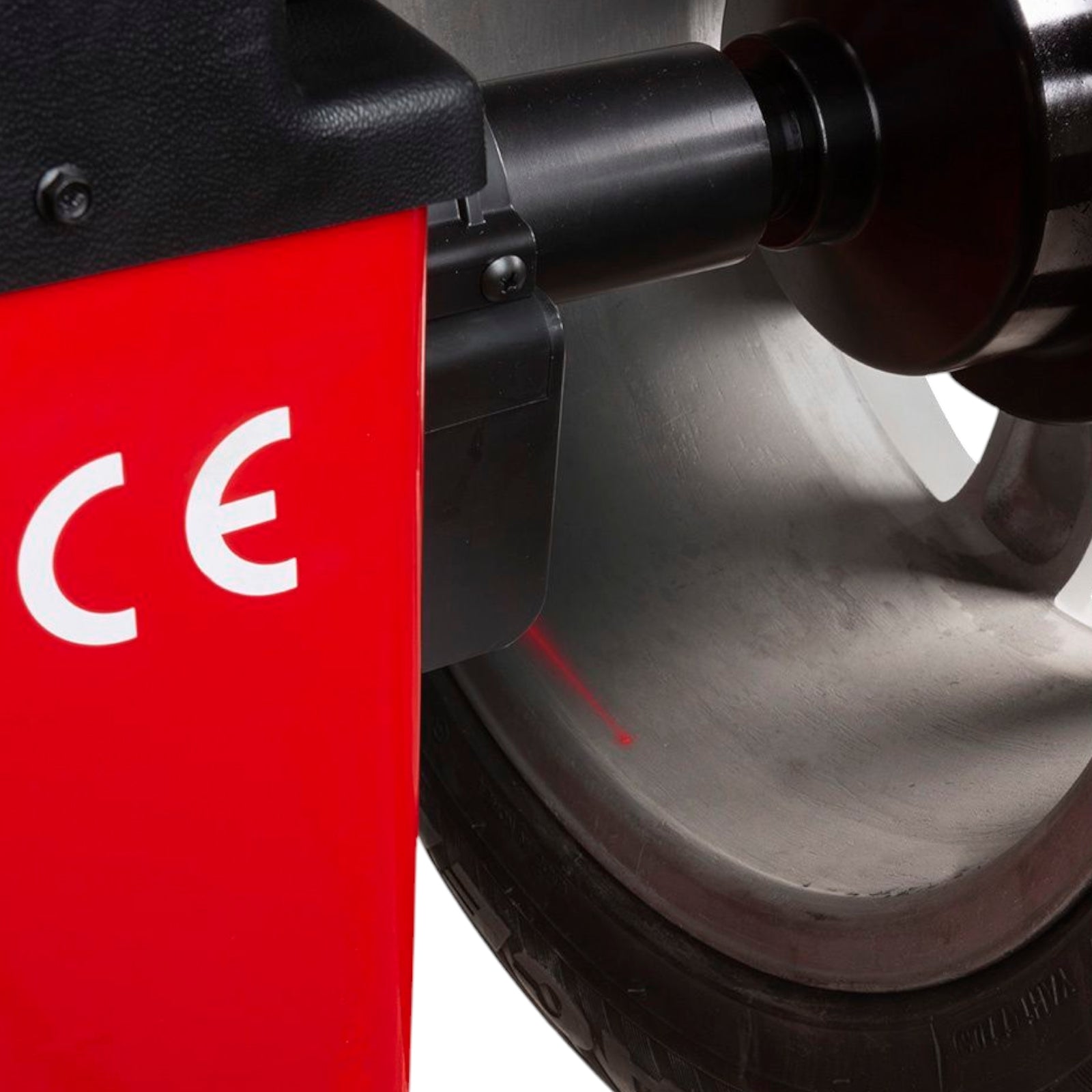Im Preis dieser Auswuchtmaschine ist ein Laser enthalten - dieser zeigt mit äußerster Präzision die Stelle, an der das Wuchtgewicht platziert werden soll.